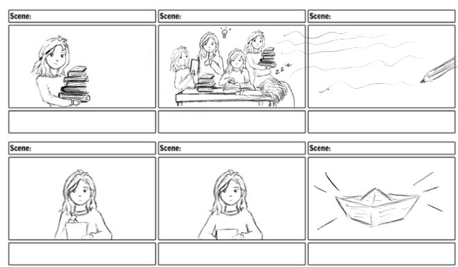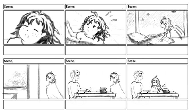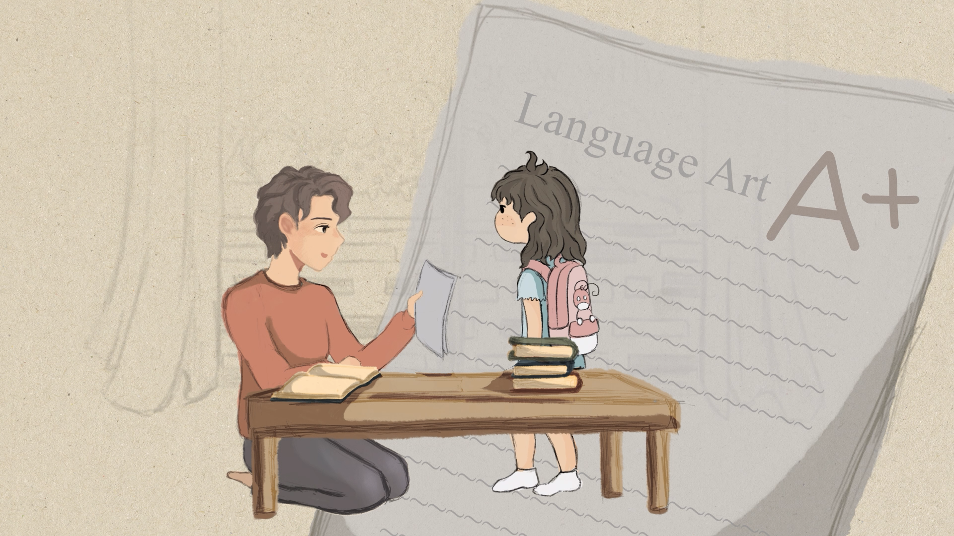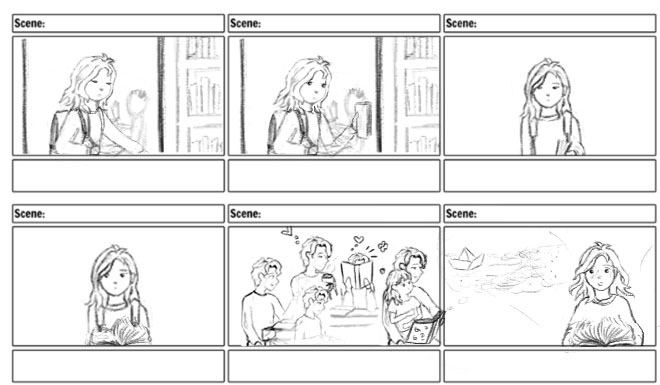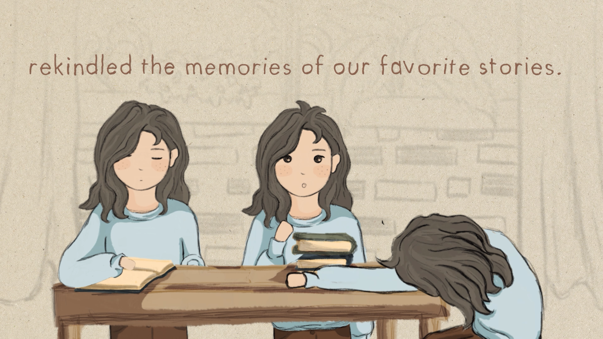 The illustrations in the animation are part of the love letter that the daughter is writing to her mom. The animation has paper textured background, environments are illustrated in black and the characters have imperfect pencil strokes to signify that the letter is hand drawn on paper.